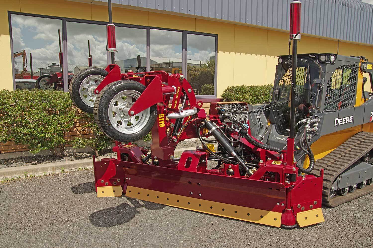 A curved moldboard ensures wet material can be easily rolled. Operated from your machine’s hydraulic system, in-cab adjustments are a breeze and leveling is up to ten times faster than leveling using a skidsteer and standard bucket attachment.