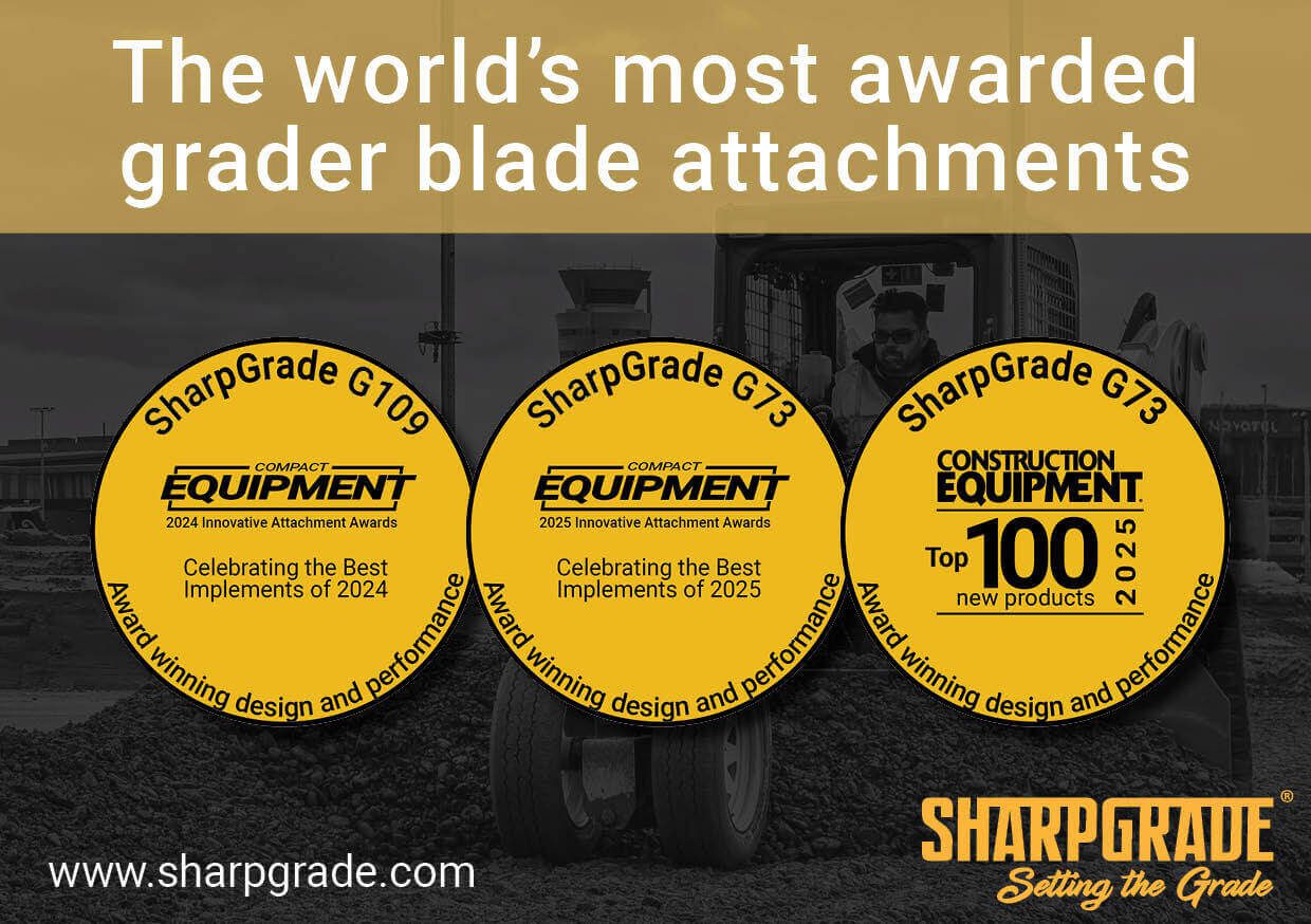 The SharpGrade Skid Steer Grader Blade enables you to accurately level to within 1/8″ (3mm). Using a SharpGrade Grader Blade is up to ten times faster than levelling using a skid steer with standard bucket attachment.